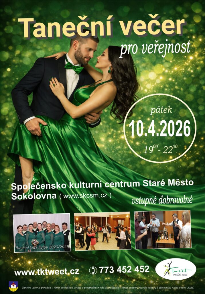 - + 1x dobrovolná účast na Tanečním večeru s reprodukovanou hudbou (trvání večera cca 4x – 6x 45 minut – datum Tanečního večera – 10.4.2026)